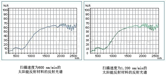 在秉承U-4100型光學(xué)系統(tǒng)高性能的同時(shí),UH4150提供更高通量的測(cè)定。之前型號(hào)的儀器在1 nm數(shù)據(jù)間隔下測(cè)定時(shí),掃描速度必須是600 mm/min。UH4150型可在1,200 nm/min的掃描速度下以1 nm的間隔進(jìn)行測(cè)定,顯著縮短測(cè)定時(shí)間。*5 UH4150在約2分鐘內(nèi)可從240 nm測(cè)定到2,600 nm。對(duì)需要在紫外-可見(jiàn)-近紅外波長(zhǎng)范圍內(nèi)測(cè)定的樣品,如太陽(yáng)能反射材料,尤其有效。
