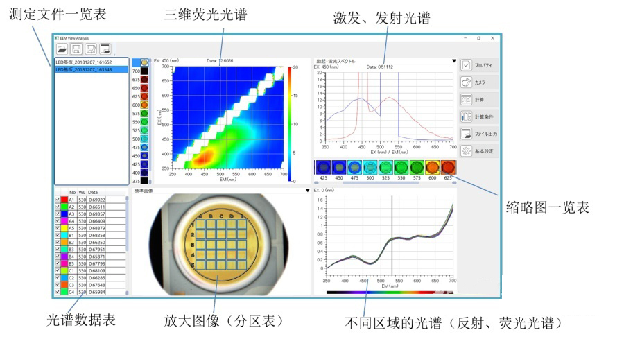 熒光分布成像系統(tǒng)軟件分析(EEM View Analysis)界面(樣品:LED電路板)