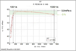 Newtonian liquid E7,測(cè)量介于 100 s-1 和 1500 s-1 之間,容差為 ± 5%)。