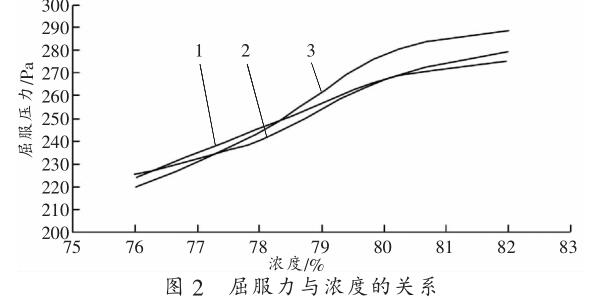 ( 3 )相同膠砂比時,砂漿屈服力和黏度隨著濃度提高而增大;相同濃度時,砂漿屈服力和黏度隨著膠砂比的提高而減小。