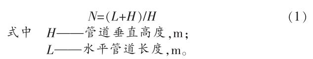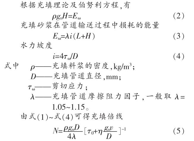 對某一礦山, H 是確定值,所以充填倍線與管道水平長度成正比,即充填倍線值越大,可用自流充填的范圍越大。
