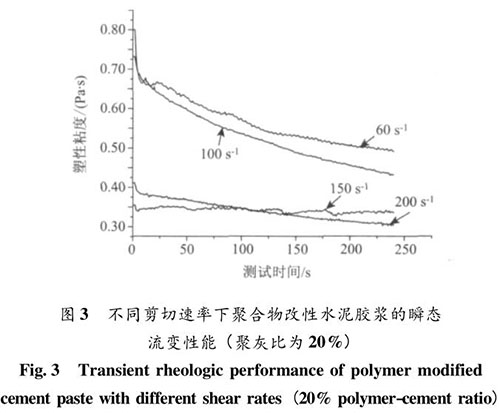 2. 3 剪切速率對(duì)聚合物改性水泥膠漿瞬態(tài)流變性能的影響