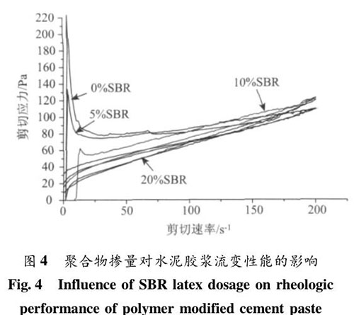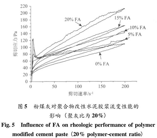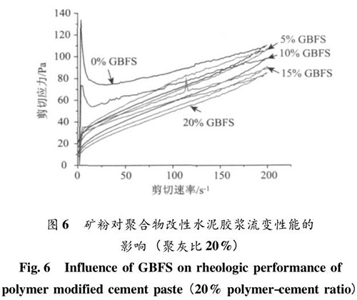 2. 5 礦物摻和料對(duì)聚合物改性水泥膠漿流變性能的影響