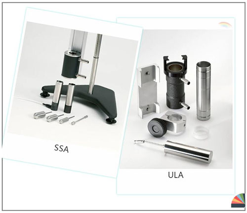 原有標(biāo)準(zhǔn)型粘度計的基礎(chǔ)上,再配合使用我們的小量樣品適配器SSA(樣品量2-16mL)或超低粘度適配器ULA(16mL),或DIN適配器(16-20mL)