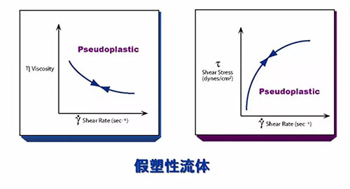 其中,我們最為注重的幾類分別為假塑性流體(下圖綠線)、賓漢流體(下圖黑線)及觸變性流體。