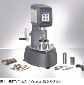 融化的巧克力的流動(dòng)行為在很多情況下都是一個(gè)關(guān)鍵因 素。其生產(chǎn)運(yùn)輸、灌裝、浸漬及注射等過(guò)程需要巧克力 具有非常適合的粘度及屈服應(yīng)力。同樣,最終產(chǎn)品的外 觀及口感也直接受到其粘性行為的影響。 對(duì)于巧克力生產(chǎn)公司或者以巧克力為原料的制品公司, 比如巧克力曲奇制造商來(lái)說(shuō),測(cè)試其粘度已經(jīng)成為一個(gè) 標(biāo)準(zhǔn)的質(zhì)量控制方法。 為了滿(mǎn)足客戶(hù)在質(zhì)控過(guò)程中快速,簡(jiǎn)單,更加可靠的進(jìn) 行粘度測(cè)試,新一代賽默飛 TM 哈克 TM Viscotest iQ 智能 流變儀(圖1)已經(jīng)問(wèn)世。這臺(tái)設(shè)計(jì)獨(dú)一無(wú)二,基于質(zhì) 控應(yīng)用的儀器具有很多新的特點(diǎn)。比如,它的靈敏度的 高度提升保證了其可以使用更小的測(cè)量夾具,并可以節(jié) 約用戶(hù)的樣品以及溫度平衡的時(shí)間和清理時(shí)間。同時(shí)也 提高了其測(cè)量更低的剪切速率的能力,改善了其利用數(shù) 學(xué)模型進(jìn)行模擬計(jì)算的可靠性,比如用卡松模型來(lái)擬合 計(jì)算樣品的屈服應(yīng)力 [1]。