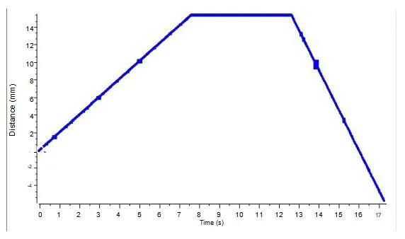 顯示了探頭在測試石蠟時候的位移與時間的關系。