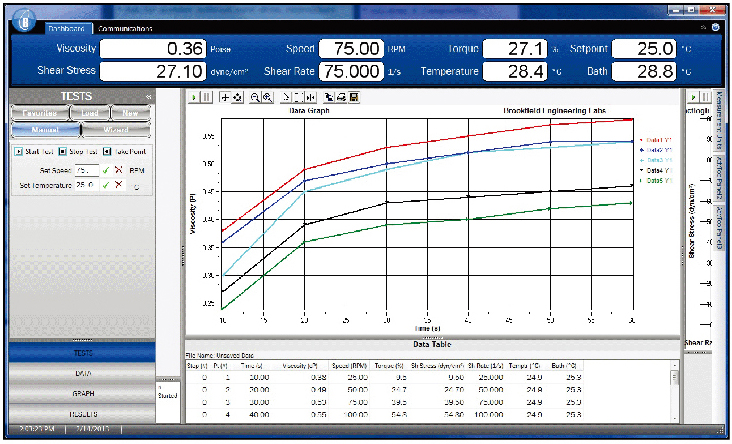 RheocalcT軟件可以用來分析數(shù)據(jù),生成多層圖形,打印數(shù)據(jù)列表,運行數(shù)學(xué)模型以及一些其他的省時省力的例行功能。可繪制并保存高達(dá)5組的比較數(shù)據(jù)另外、還包括以下特點: