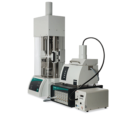 DEA 288 Epsilon 可與 DMA 242 E 聯(lián)用,在一次測(cè)量中同步跟蹤聚合物的介電與動(dòng)態(tài)機(jī)械性能的變化。測(cè)量使用 DMA 的壓縮樣品支架和 DEA 的平行板電極。這一技術(shù)是互補(bǔ)的:DMA 能夠清楚地表征樹脂的膠凝與玻璃化,DEA 則更清晰地表征低粘度區(qū)域與固化反應(yīng)。