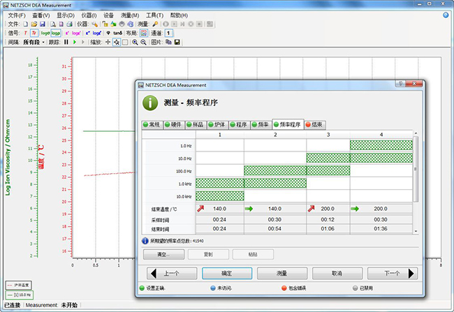 測(cè)量參數(shù)編制界面為不同顏色的多標(biāo)簽頁風(fēng)格,方便了數(shù)據(jù)輸入,且確保不會(huì)遺漏重要參數(shù) – 不管它與樣品的信息有關(guān),還是與溫度 / 時(shí)間程序、或施加的頻率有關(guān)。