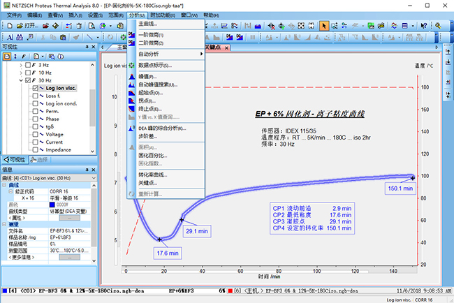 • DEA 變量:顯示離子粘度(ion viscosity),離子電導(dǎo)(ion conductivity),損耗因子(loss factor),介電常數(shù)(permittivity),tgδ 對(duì)時(shí)間 / 溫度的變化過程