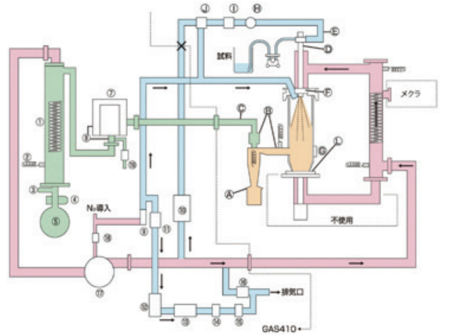 氧濃度計(jì)、可燃性氣體警報(bào)器、過電流漏電保護(hù)開關(guān)、N2強(qiáng)制導(dǎo)入(拔噴嘴時) |