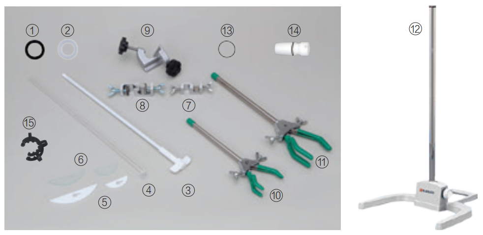 使用說(shuō)明書(shū)、保證書(shū)、軸、M5角螺栓、六角扳手、AC適配器、電源線、 保護(hù)罩 燒瓶夾 |